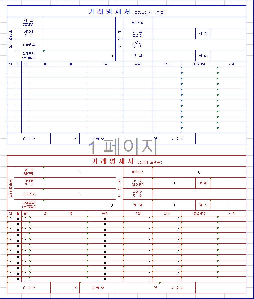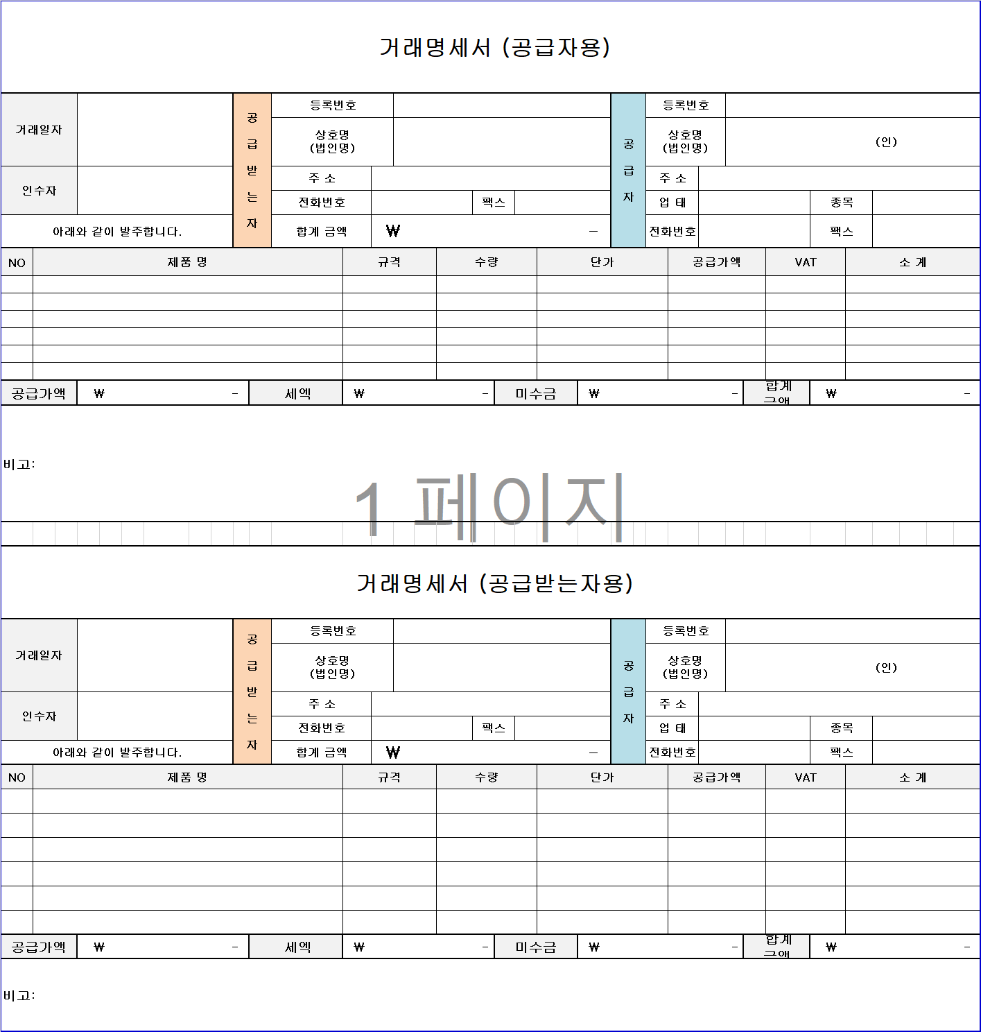 거래명세서 양식은 총 2가지를 업데이트 하였습니다. 2가지를 다운로드 하셔서 원하시는 양식에 따라 수정 사용하시길 바랍니다.