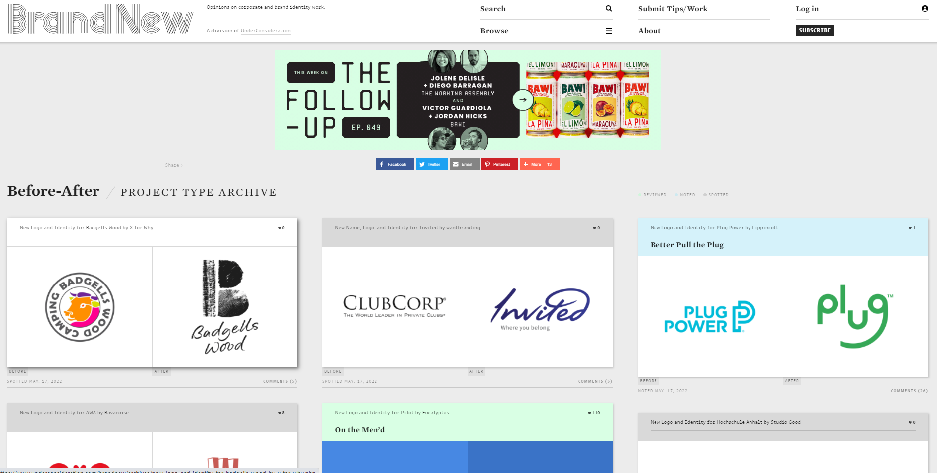 Brand New 사이트는 기업로고의 변화를 볼 수 있습니다. 기업의 로고 변화를 살펴보는 것은 무료이지만 브랜딩에 대한 스토리 및 추가 디테일을 확인하려면 결제해야 한다는 단점을 가지고 있습니다. 그래도 기업의로고 변화를 통해 최신 로고 디자인 경향도 볼 수 있고, 재밌는 사이트이니 참고 바랍니다.